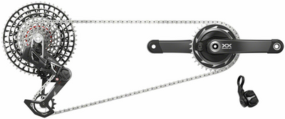 The pinnacle of cross-country cycling performance can be found in the SRAM XX SL T-Type Eagle AXS™ Transmission Power Meter Groupset. Built to serve the most demanding rider’s needs in the lightest weight configuration, XX SL Transmission is the evolution of SRAM's World Champion, World Cup winning XX Eagle AXS™. - AXS™ Pod ULT features a “click and fire” two-button design that transforms the crucial act of rider inputs into a vastly more personal experience for all your AXS™ controls - Engineered as integrated, interdependent transmission components, the XX SL Eagle T-Type rear derailleur mounts around the wheel axle itself, contacting the cassette directly with a first-of-its-kind Hangerless Interface - XX SL T-Type derailleur offers the same intuitive pairing and set-up procedure as SRAM's Eagle AXS™ derailleur - To further its performance, the lower pulley called, "Magic Wheel", keeps spinning if an object becomes lodged - Derailleur features an overload clutch that accommodates common maintenance - Ultra-lightweight XX SL T-Type 10-52t cassette offers game-changing inboard and outboard shifting performance under load - XX SL Eagle AXS™ T-Type Power Meter crankset boasts SRAMs XX SL carbon crankarm with an integrated power meter to record and deliver live, accurate power readings to your head unit - Power Meter spider-based design is highly accurate, high performing and boasts a long battery life